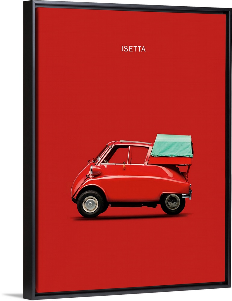 <p>Photograph of a red BMW Isetta 300 printed on a red background</p>