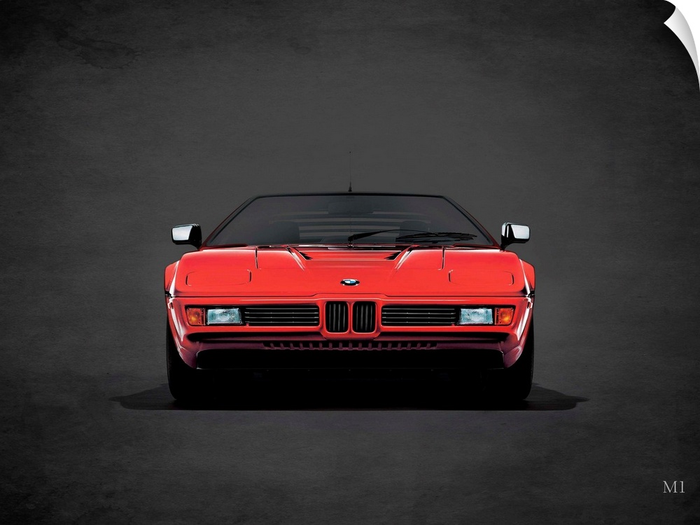 <p>Photograph of a red 1979 BMW M1 printed on a black background with a dark vignette.</p>