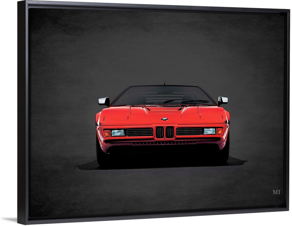 <p>Photograph of a red 1979 BMW M1 printed on a black background with a dark vignette.</p>