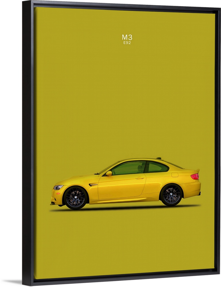 <p>Photograph of a yellow BMW M3 E92 printed on a yellow-green background</p>