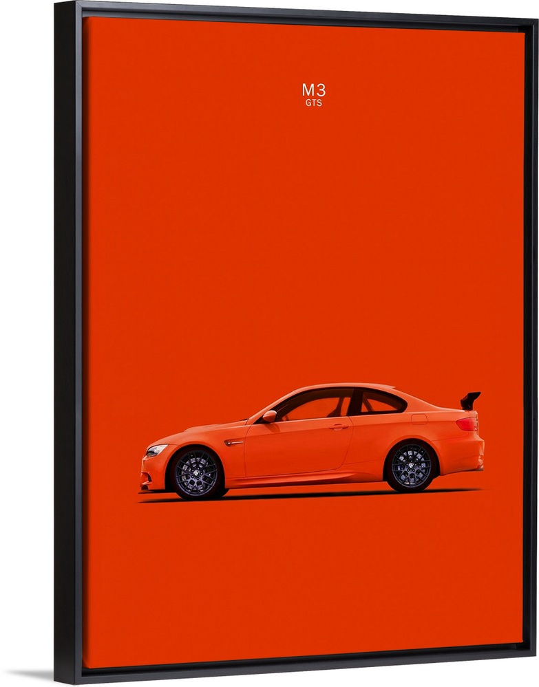 <p>Photograph of an orange BMW M3 GTS printed on an orange background</p>