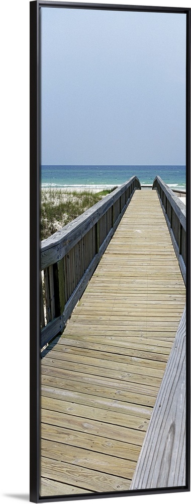 <p>Wooden walkway leading down to the sand and dune grass, the waters of the Gulf of Mexico in the background.</p>
