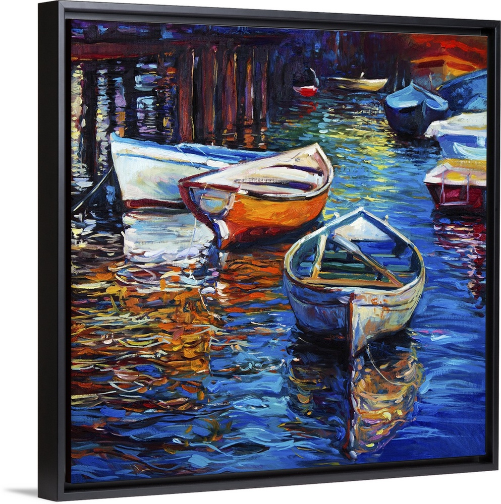 <p>Originally an oil painting of boats and jetty (pier) on canvas. Rich golden sunset over ocean. Modern impressionism.</p>