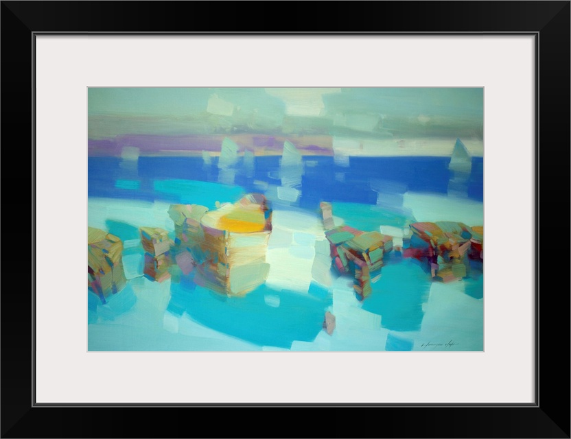Art Coastal Living Room Art Coastal Living Room Blue Wall Art Contemporary Art Rivers, Lakes, and Oceans Seascapes Painting Transportation Boat Vahe Yeremyan