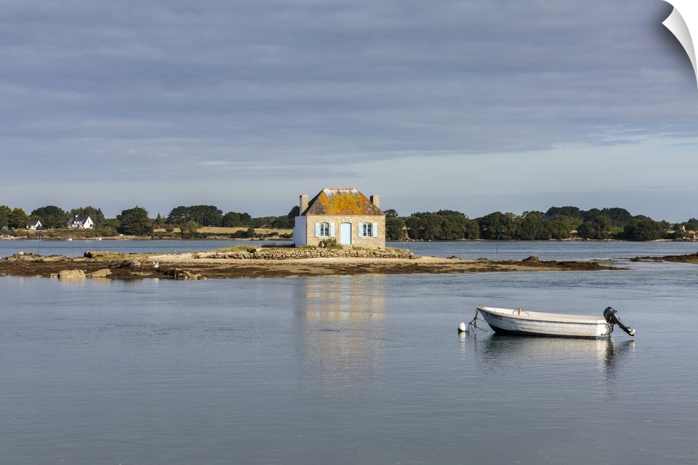 <p>Boat in front of Saint-Cado isle, Quiberon, Morbihan, Brittany, France</p>