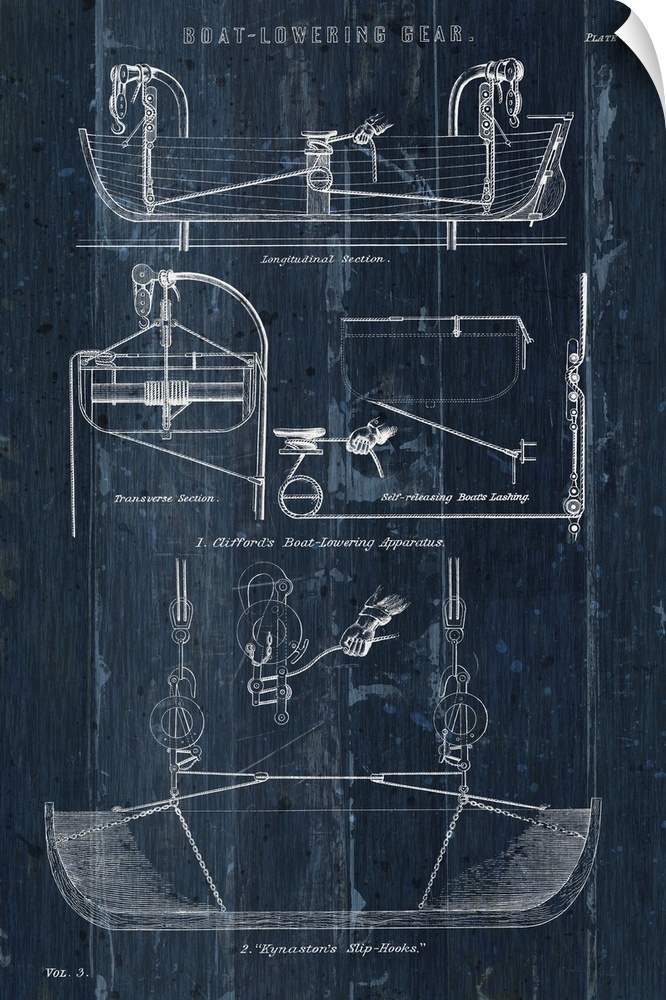 Art Traditional Blueprints Navy Blue Graphic Art Wild Apple Portfolio Boat
