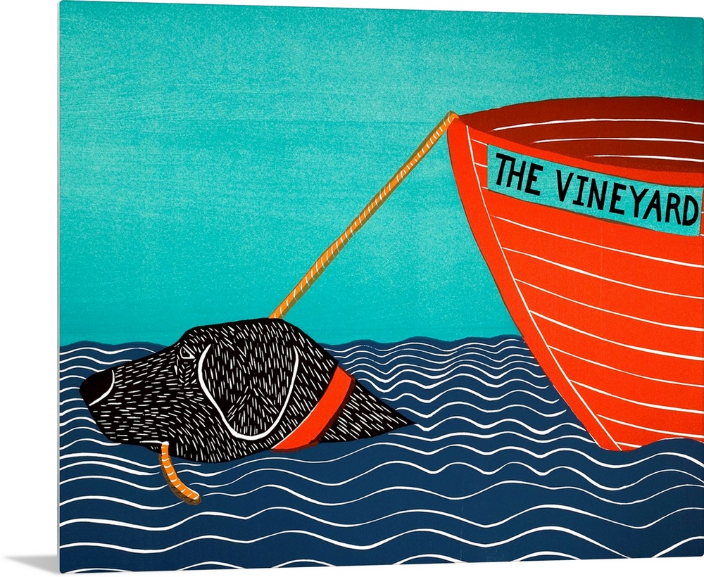 Art Blue Wall Art Decorative Art Stephen Huneck Painting Transportation Boat Wildlife Dog Labrador