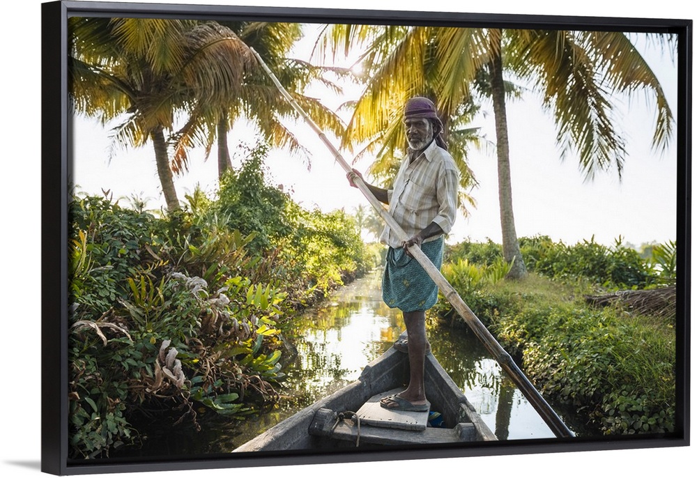 <p>Anthony the boatman guiding the vessel through Keralan backwaters near North Paravoor, Kerala, India</p>