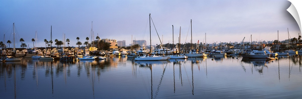 <p>Boats at a harbor, Newport Beach Harbor, Newport Beach, California, USA</p>