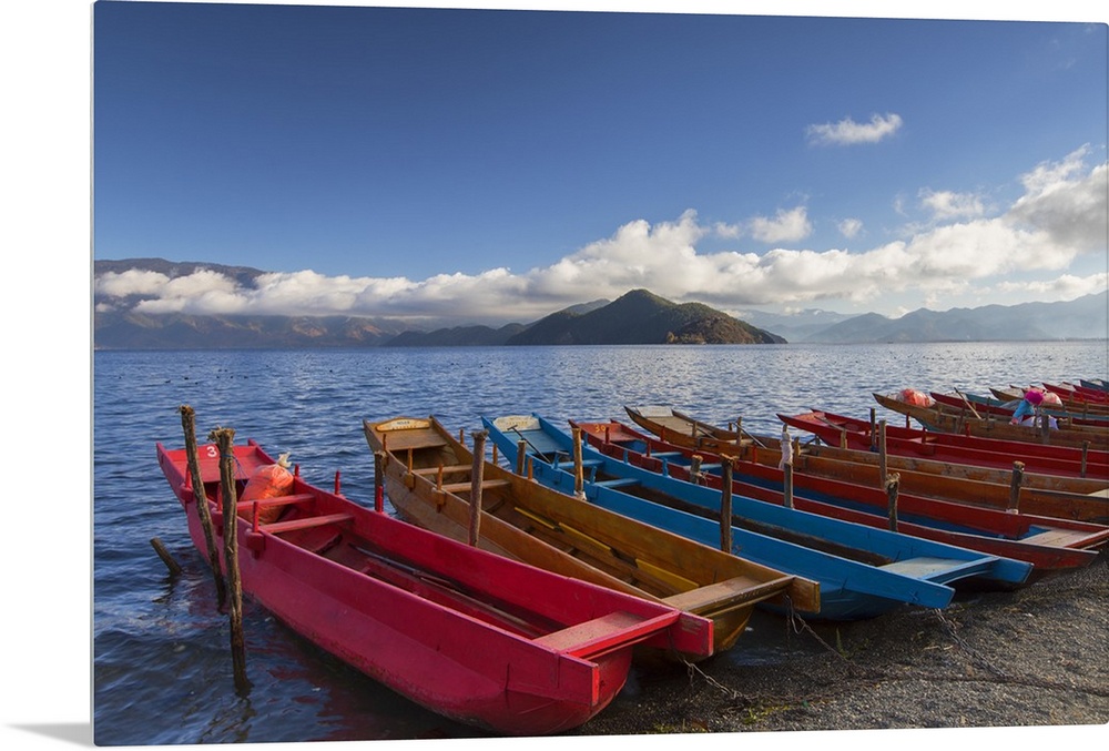 <p>Boats at Luoshui, Lugu Lake, Yunnan, China</p>