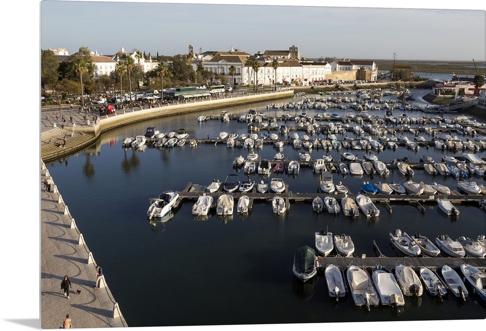 <p>Boats at moorings in the evening inn the marina in the harbour at Faro, Algarve, Portugal, Europe</p>