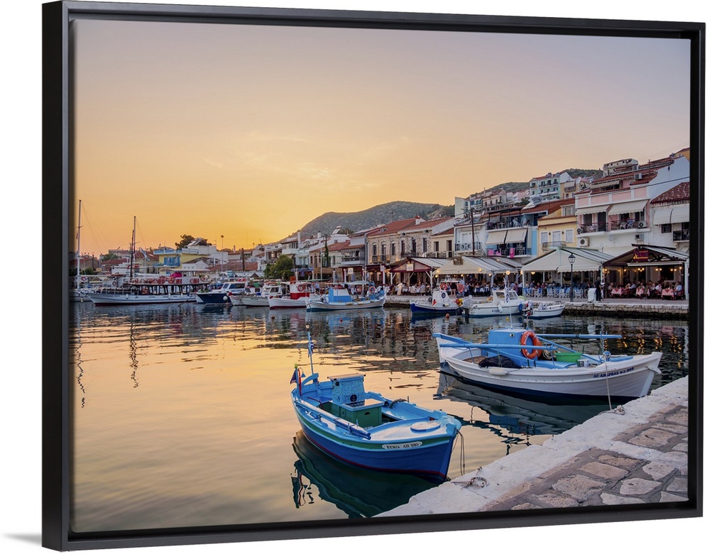 <p>Boats at the Port of Pythagoreio, dusk, Samos Island, North Aegean, Greek Islands, Greece, Europe</p>