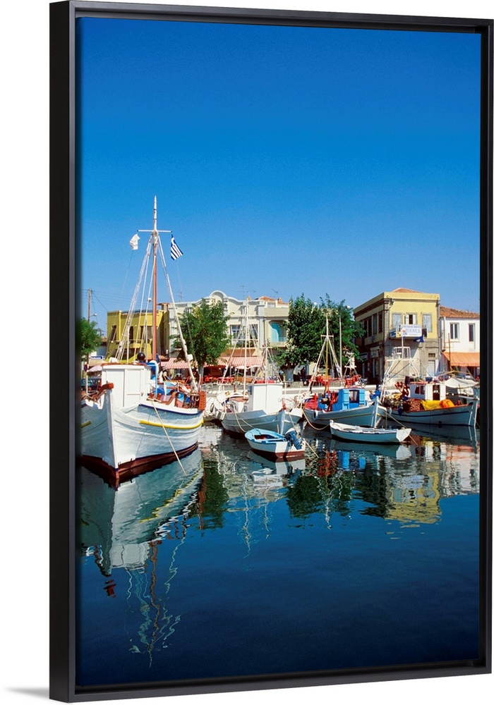 <p>Boats docked at a harbor, Limnos, Greece</p>