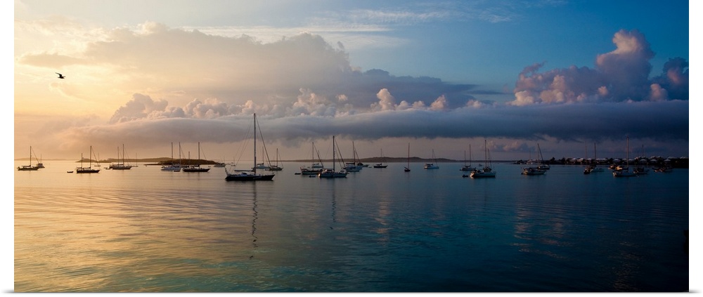 <p>Boats in Caribbean Sea at sunset, Georgetown, Great Exuma Island, Bahamas</p>
