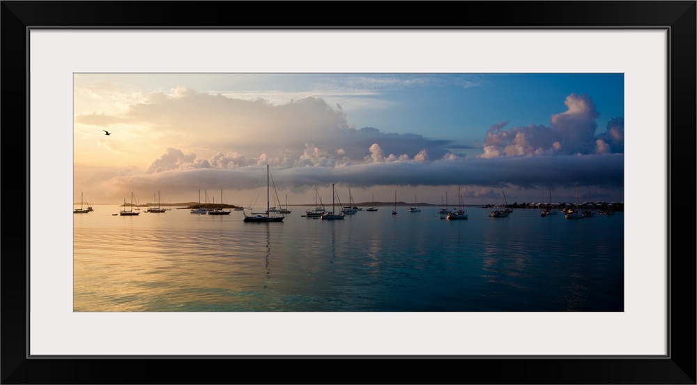 <p>Boats in Caribbean Sea at sunset, Georgetown, Great Exuma Island, Bahamas</p>