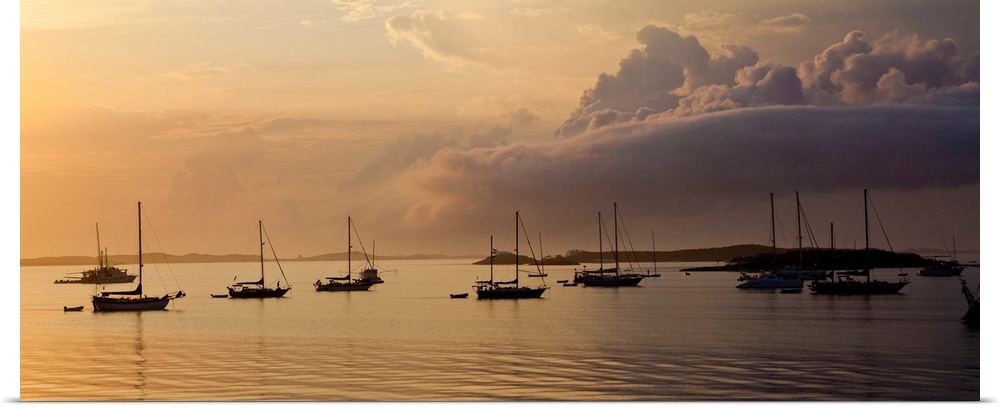 <p>Boats in Caribbean Sea at sunset, Georgetown, Great Exuma Island, Bahamas</p>