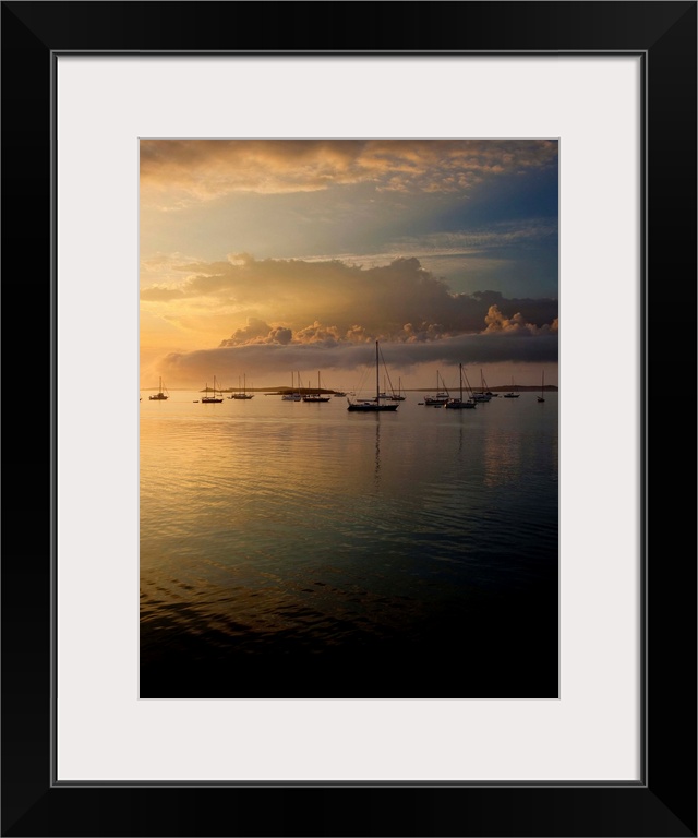 <p>Boats in Caribbean Sea at sunset, Georgetown, Great Exuma Island, Bahamas</p>