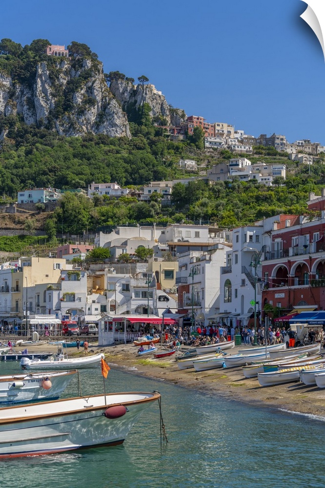 <p>View of boats in Marina Grande overlooked by Capri Town in the background, Isle of Capri, Bay of Naples, Campania, Italy, Mediterranean, Europe</p>