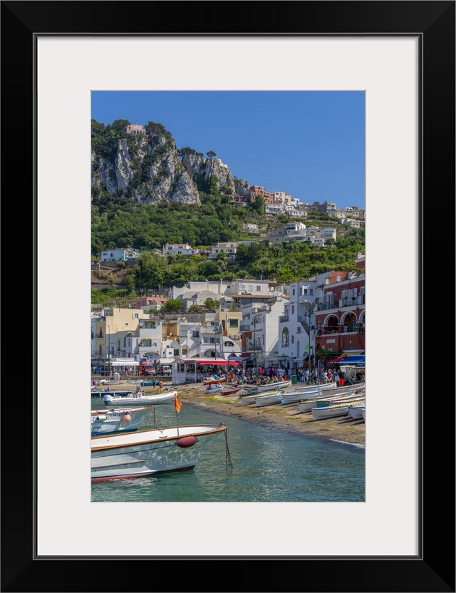 <p>View of boats in Marina Grande overlooked by Capri Town in the background, Isle of Capri, Bay of Naples, Campania, Italy, Mediterranean, Europe</p>