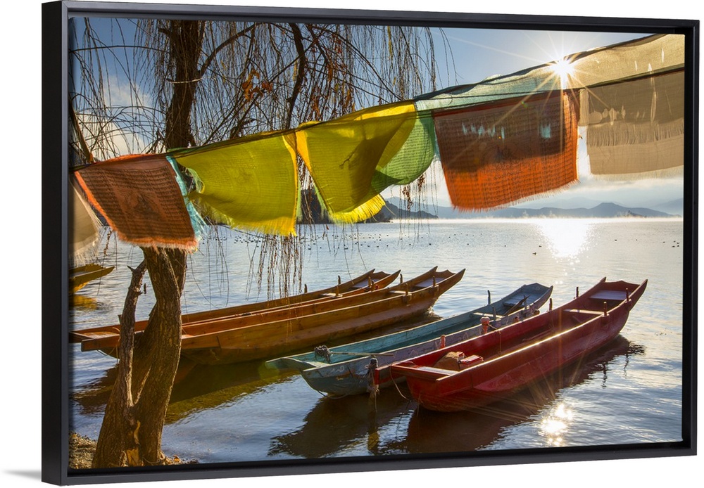 <p>Boats on Lugu Lake, Lige village, Yunnan, China.</p>