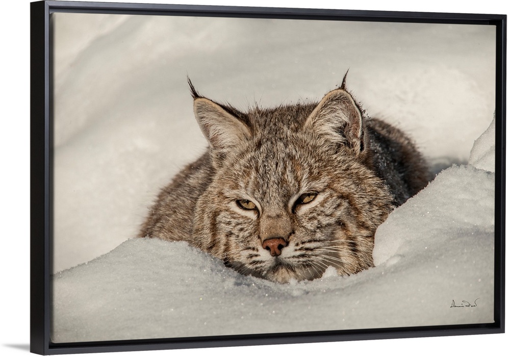 <p>Juvenile bobcat (Lynx rufus) posing in the snow, Bozeman, Montana, USA.</p>