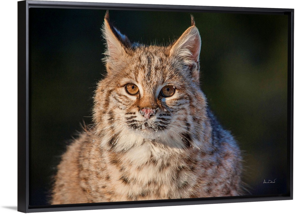 <p>Juvenile bobcat (Lynx rufus) posing in the snow, Bozeman, Montana, USA.</p>