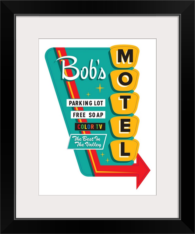 <p>Digital art painting of a poster titled Bob's Motel IN WHITE by JJ Brando.</p>
