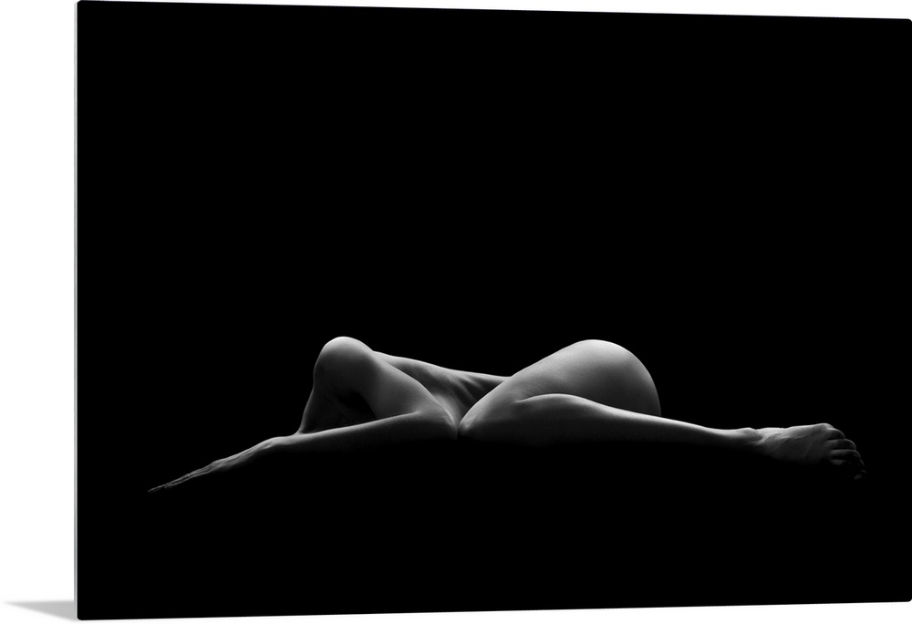 <p>A nude female form seen partially illuminated in a dark environment.</p>