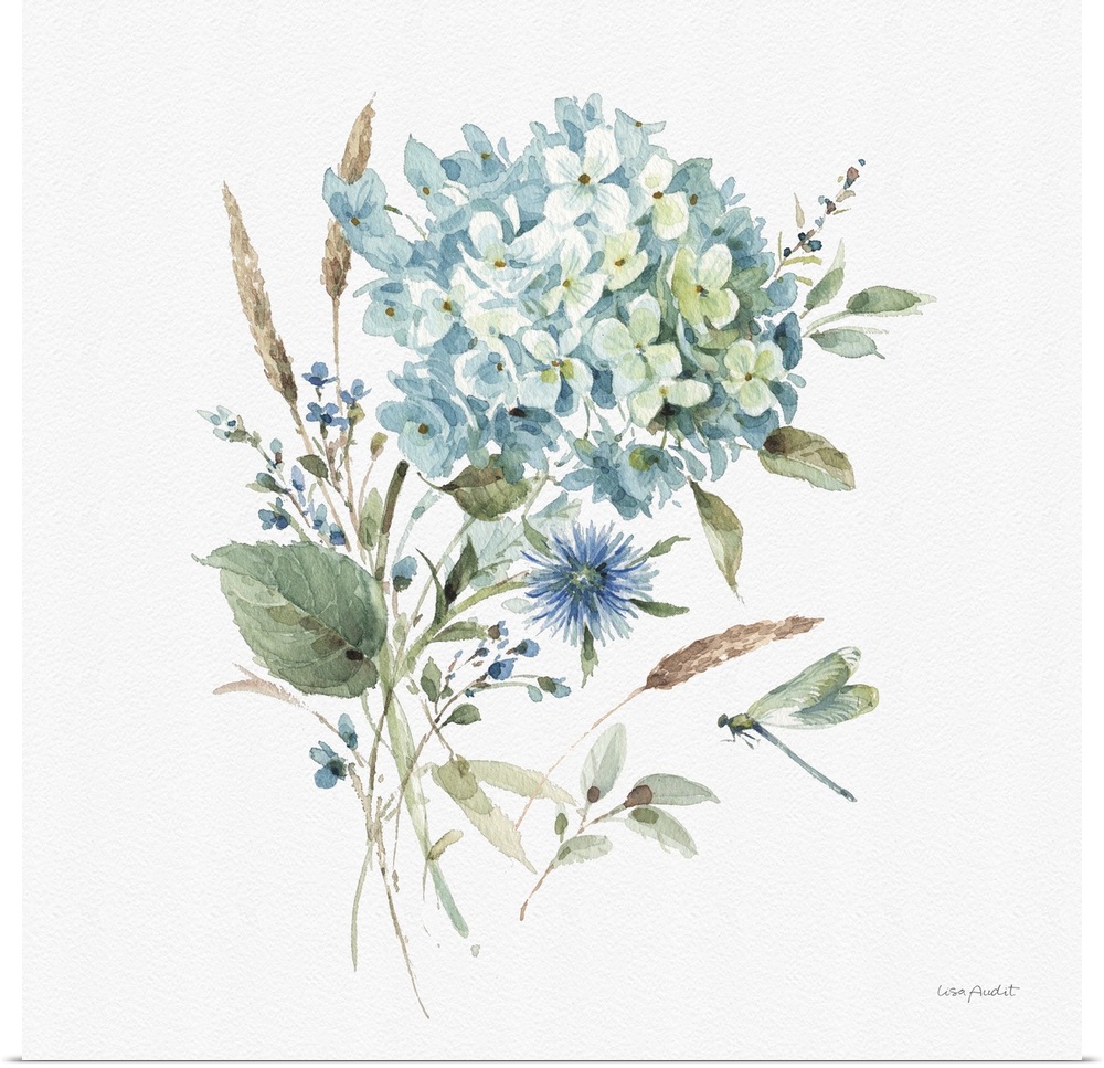Art Lisa Audit Blue Flowers Decorative Art Florals Hydrangea Painting Watercolor