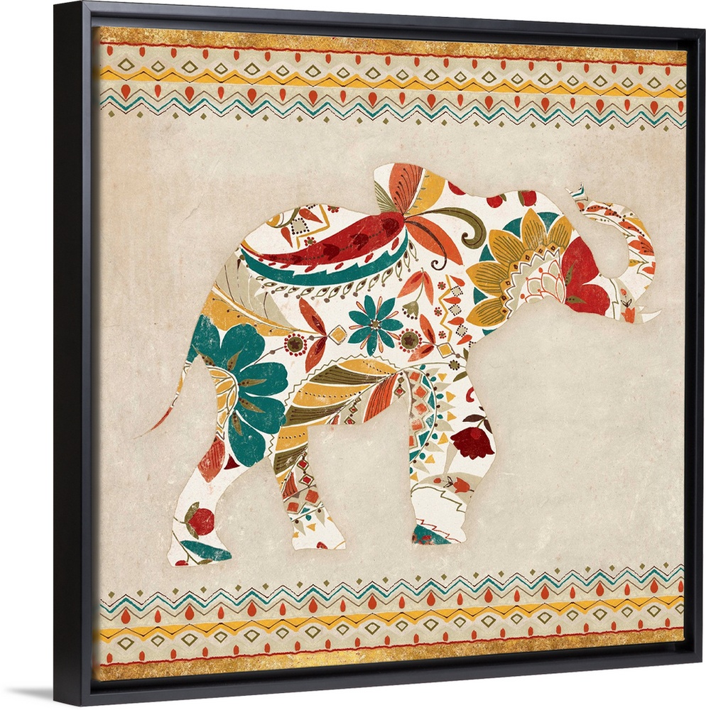 <p>Contemporary home decor artwork of an elephant in an ornate and decorative floral pattern.</p>