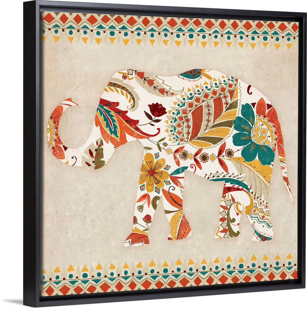 <p>Contemporary home decor artwork of an elephant in an ornate and decorative floral pattern.</p>