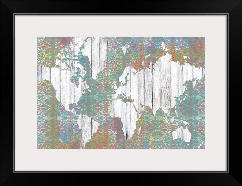 <p>Contemporary art map using muted colors and rustic wood textures.</p>