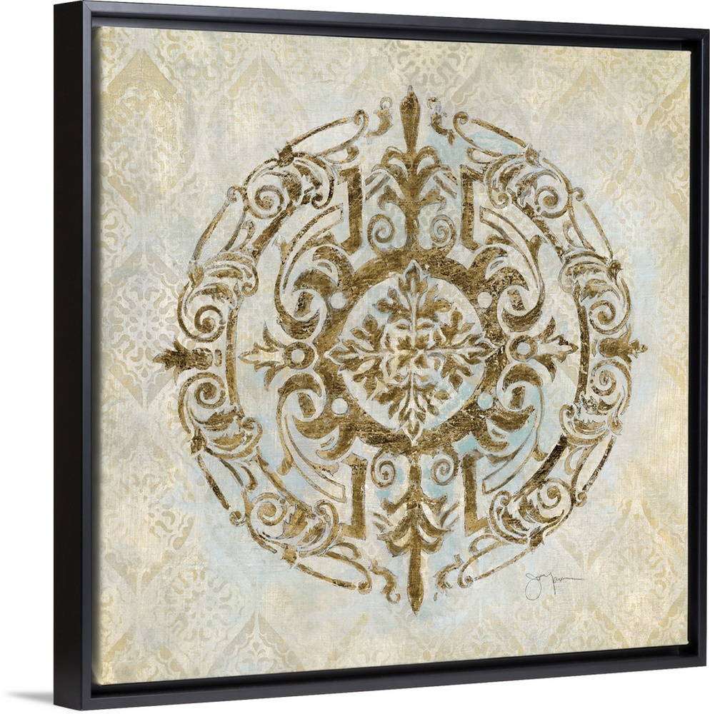 <p>Round medallion design in a Bohemian style in shades of gold.</p>