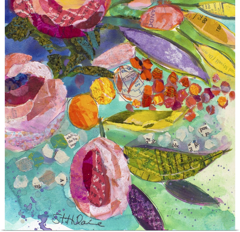 Art Color Palettes Teal Lake Contemporary Art Florals Mixed Media Art Multicolor Wall Art Elizabeth St. Hilaire