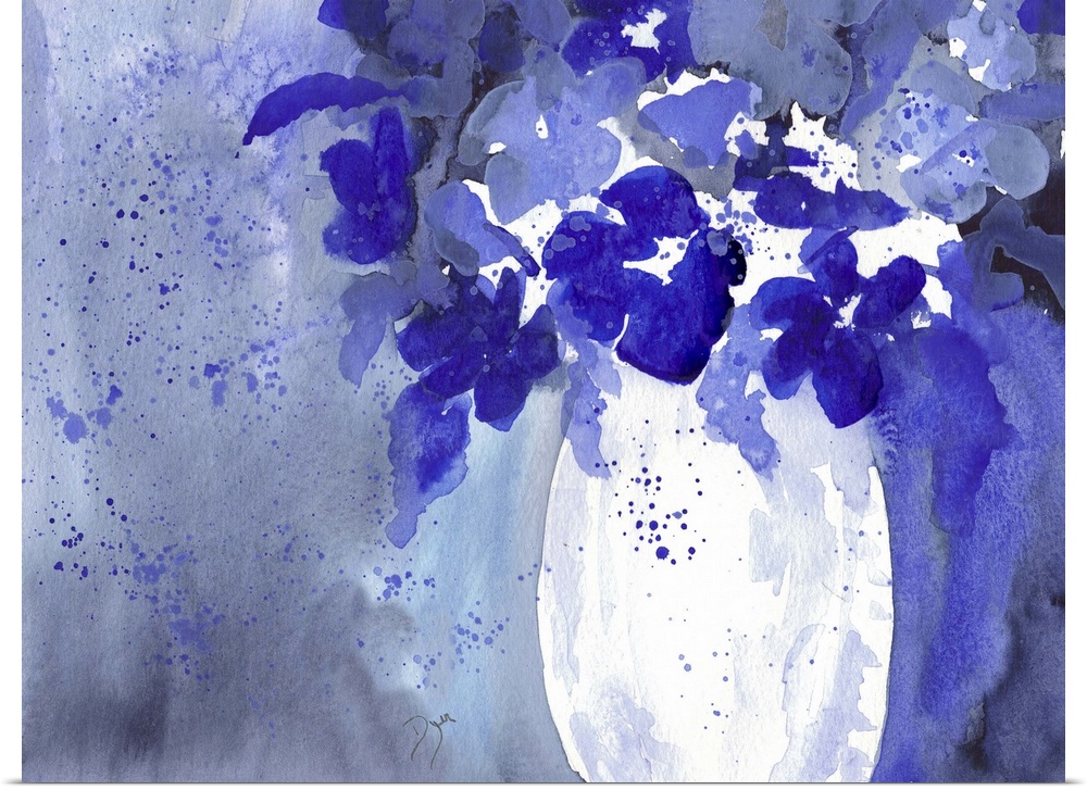 Art Blue Wall Art Decorative Art Beverly Dyer Florals Painting Watercolor