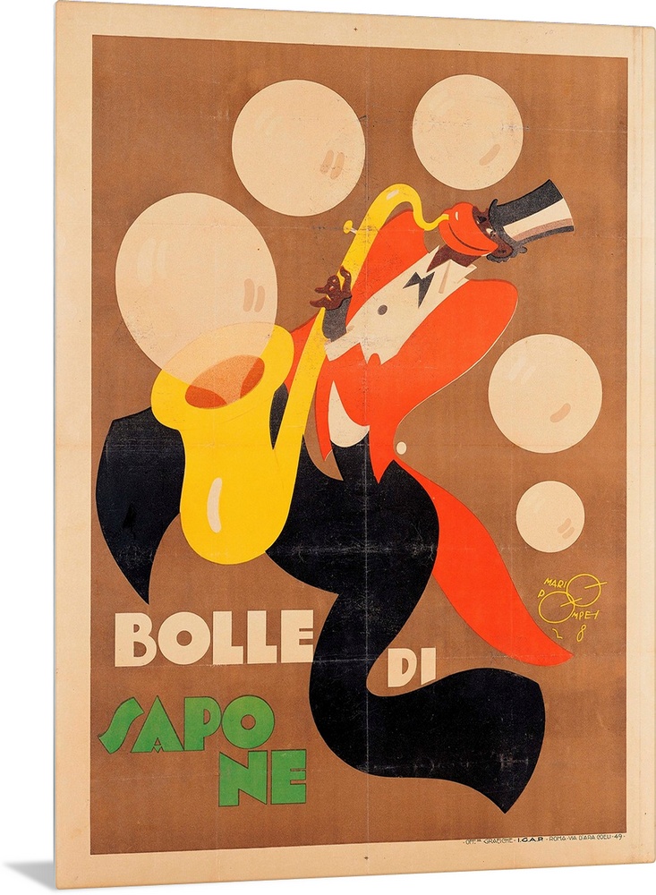 <p>private collection. Advertising poster soap bubbles saxophone black red brown. (160000) Everett Collection\Mondadori Portfolio</p>