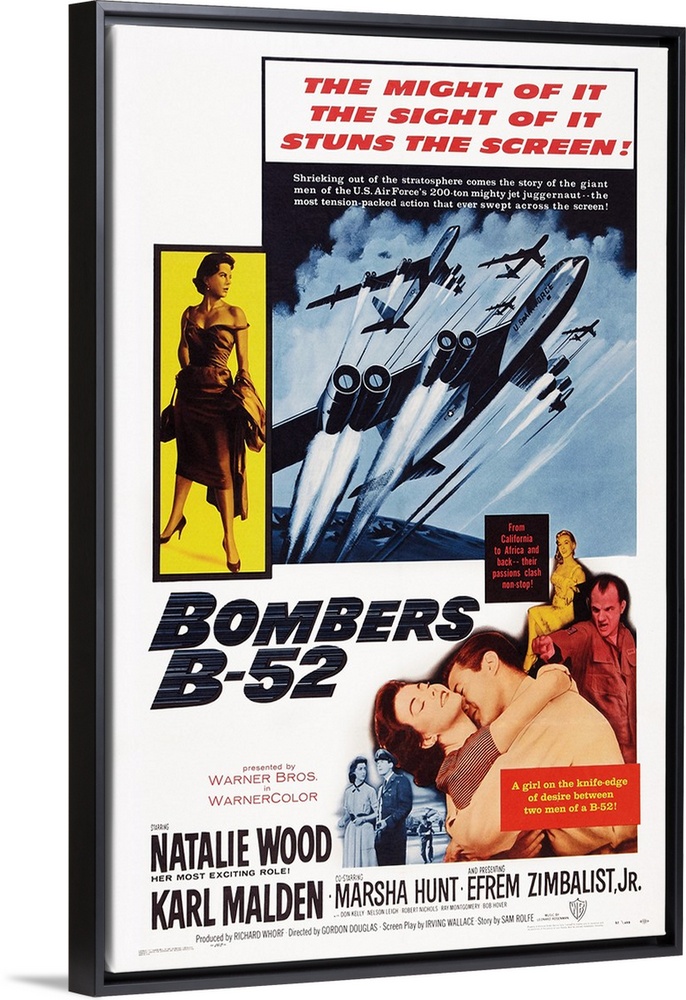<p>Bombers B-52, US Poster Art, Top Left: Natalie Wood; Bottom Left: Marsha Hunt; Center: Natalie Wood, Efrem Zimbalist Jr.; Right: Karl Malden, 1957.</p>
