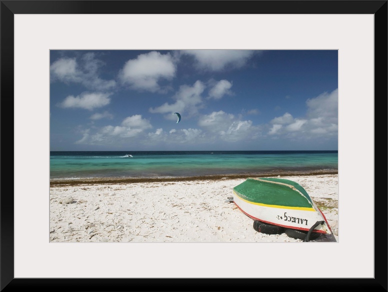 <p>ABC Islands - BONAIRE - Pink Beach: Beach View with Fishing Boat</p>