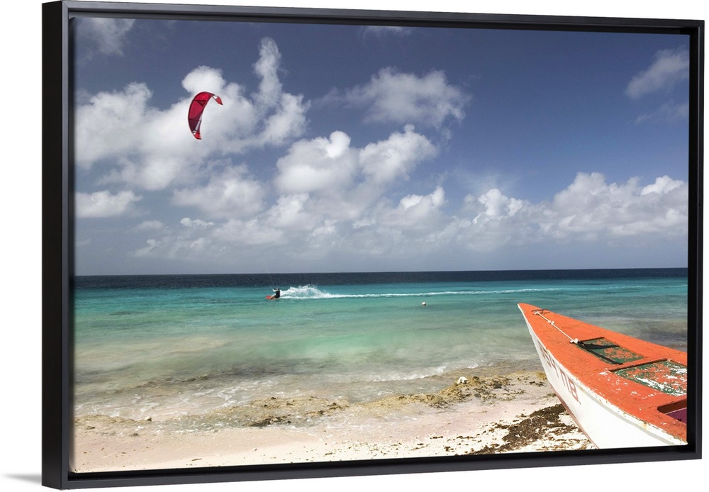 <p>ABC Islands-BONAIRE-Pink Beach:.Beach View with Fishing Boat</p>