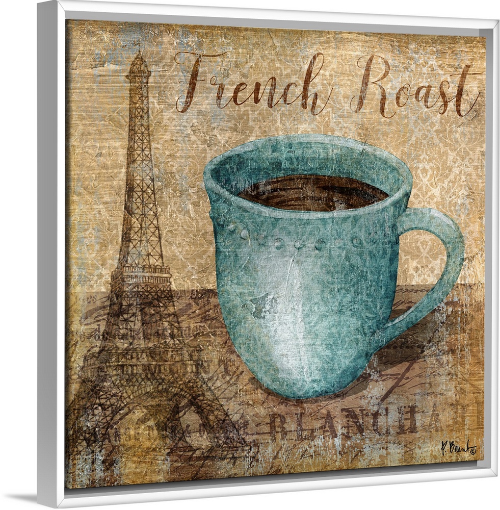 <p>Decorative artwork of a blue mug of coffee with the words "French Roast."</p>