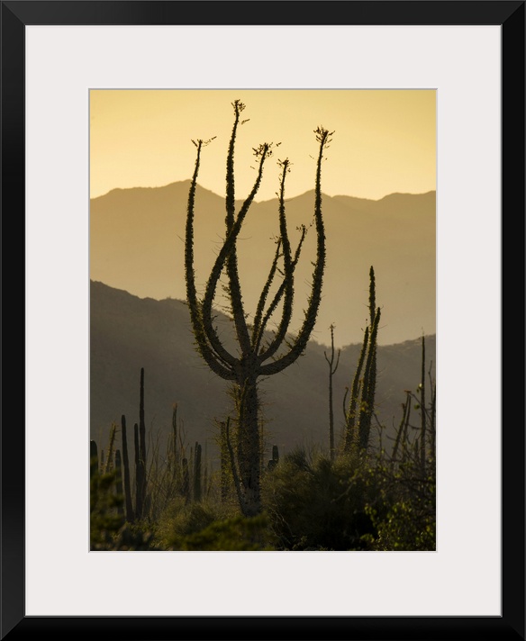 <p>Boojum trees (Fouquieria columnaris) silhouetted at sunset at the northern end of the Sea of Cortez, near Bahia de Los Angeles, Baja California, Mexico</p>