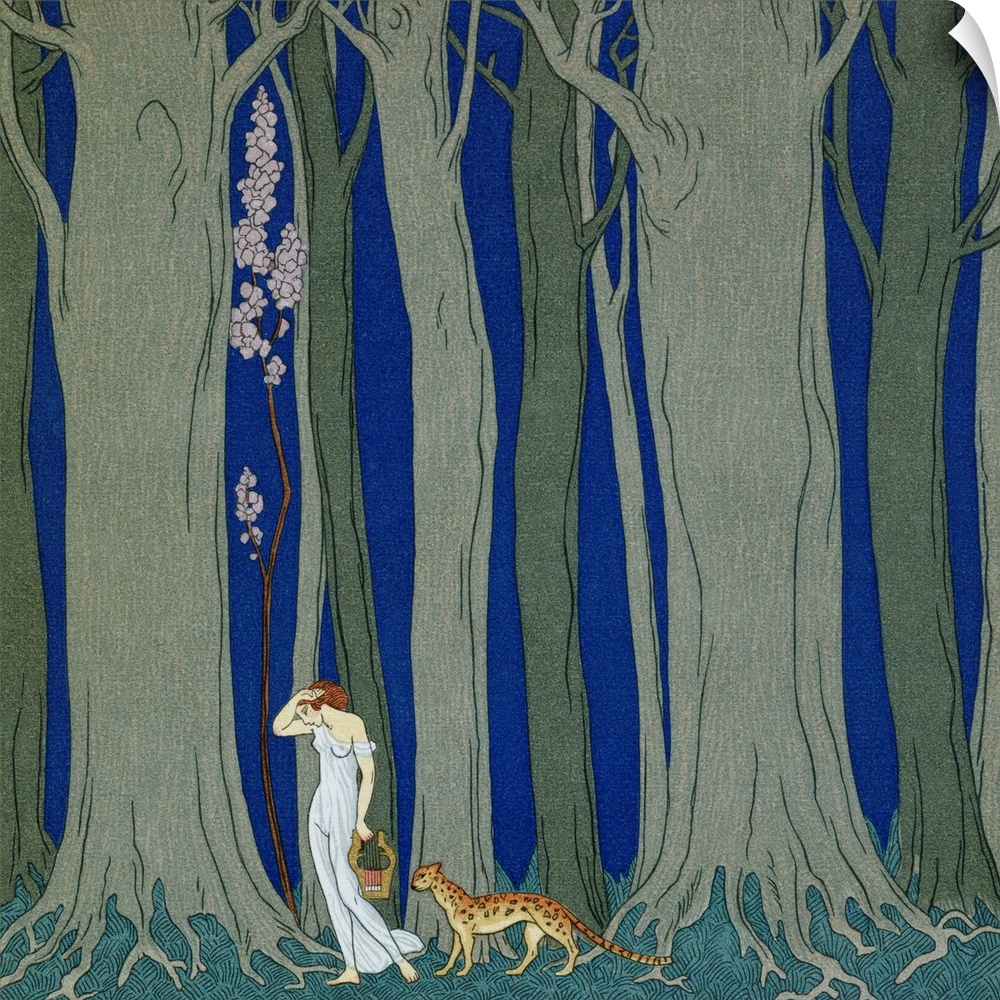 <p>ca. 1920-1930 --- Book Illustration of a Woman and a Leopard in the Forest by Georges Barbier.</p>