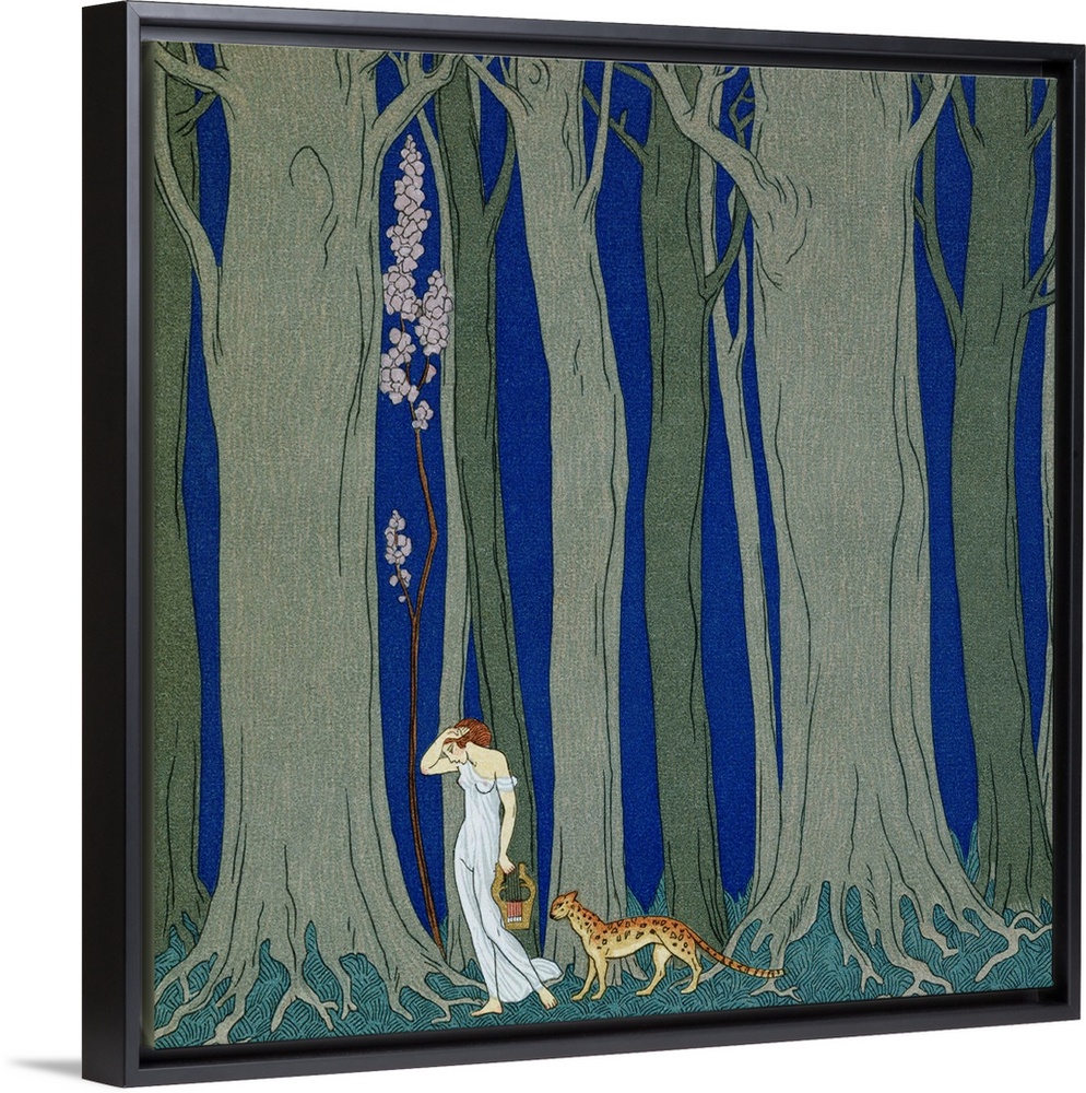 <p>ca. 1920-1930 --- Book Illustration of a Woman and a Leopard in the Forest by Georges Barbier.</p>