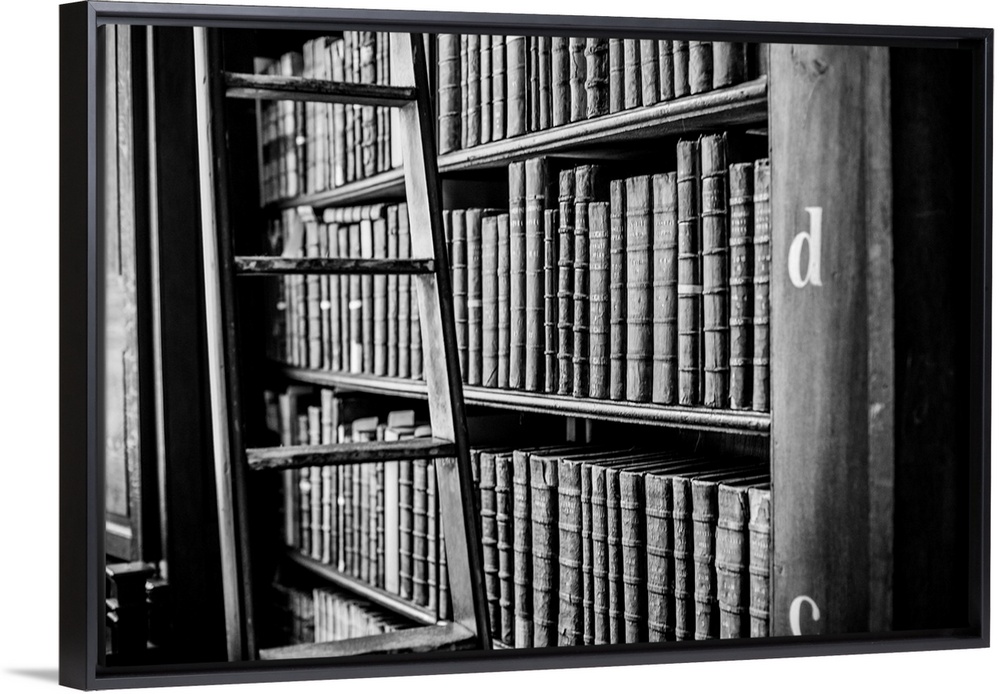 <p>Book shelves and ladder at Trinity College Library in Dublin, Ireland, which serves Trinity College and the University of Dublin.</p>