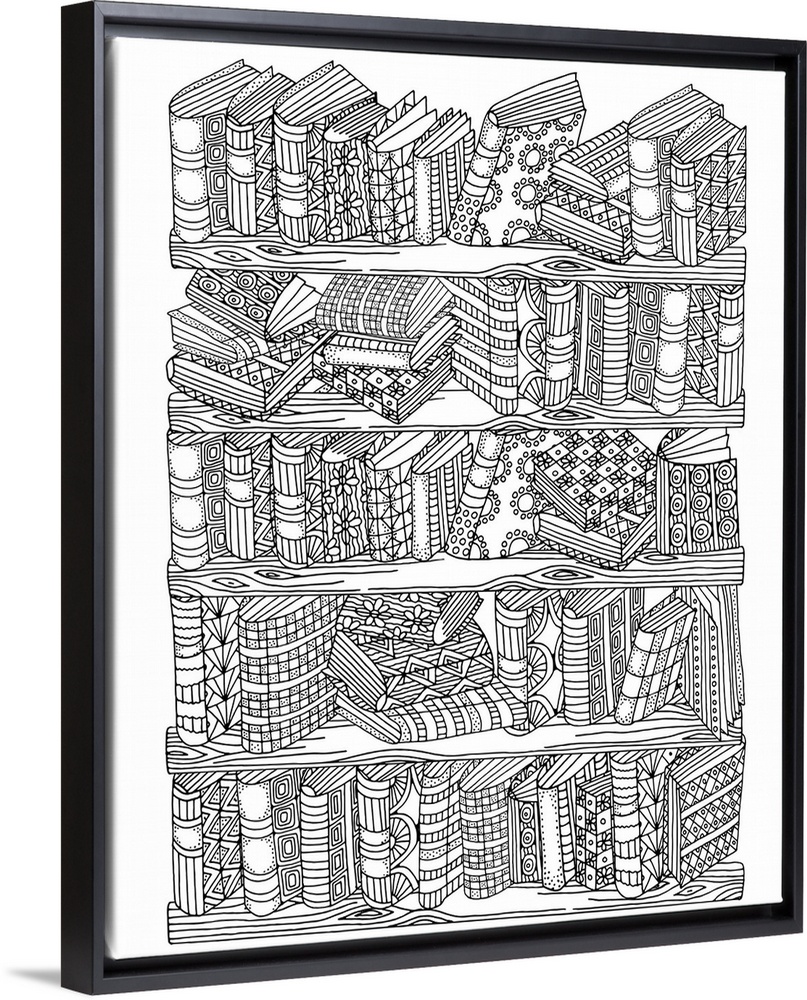 <p>Contemporary line art of a bookshelf stacked with a ton of books. Perfect for Coloring Canvas.</p>
