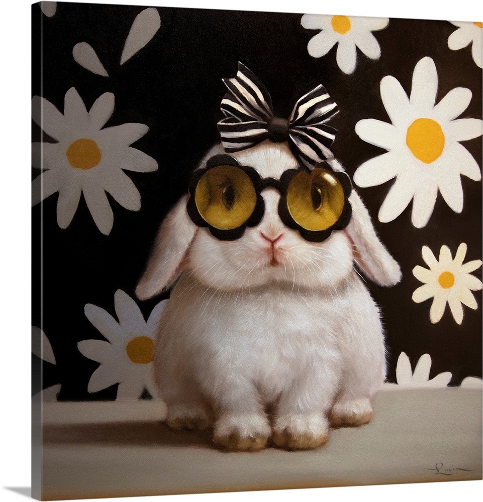 Art Children's Art Girls Room Black and White Wall Art Contemporary Art Lucia Heffernan Painting Surrealism Wildlife Rabbit