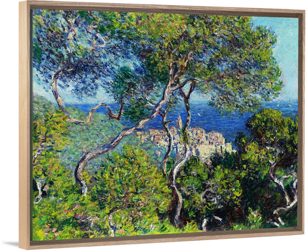 <p>Early in 1884, Claude Monet traveled to Bordighera, a town on the Italian Riviera, close to the border between Italy and France, for a working visit of three weeks that turned into nearly three months. In a letter to the sculptor, Auguste Rodino describing his efforts to translate into paint the brilliant Mediterranean light, Monet declared he was "fencing, wrestling, with the sun." In other letters, he complained of the impossibility of finding a motif due to the abundant vegetation. In this sun-drenched composition painted from a hilltop vantage point, the sea is barely visible through the interlaced trunks of local pine trees.</p>