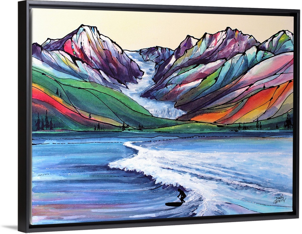 <p>Dawn Gerety was born in Sydney, Australia and raised across the globe in Girdwood, Alaska. As a lifelong Alaskan, she is moved by the natural splendor that has surrounded her her entire life – mountains, wildlife, rivers, wildflowers and outdoor activities. Dawn paints these images and creates her own language with a swipe of color or a rigid line of dots. She injects a fiercely whimsical vitality to Alaskan icons the only way she knows how.</p>