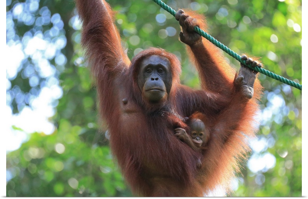<p>Bornean Orangutan mother and baby, Borneo, Malaysia, Southeast Asia</p>
