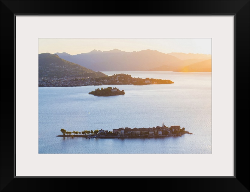 <p>Borromean Islands, Stresa, Lake Maggiore, Verbano-Cusio-Ossola, Piedmont, Italy. View over the isles at sunrise.</p>